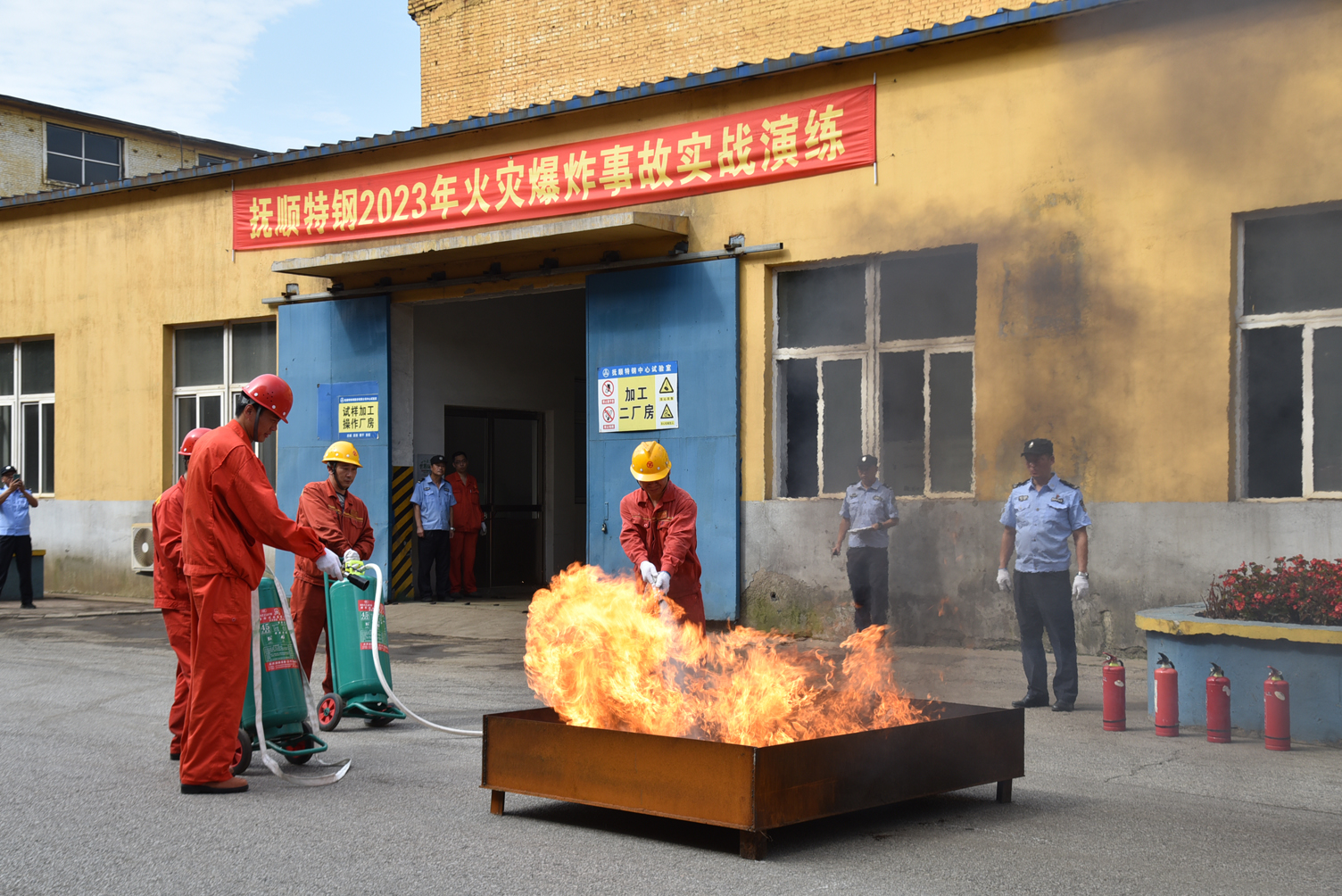 圆满结束练习是为完成“人讲急救、一个个会急救”标准,推动包括进行人“五要带头”岗位责任制完成,做的一场模拟机死亡问题车间的实用技巧练习。练习题材为,学校校正室热加工处理仓库车间发生了发生火灾,所产生过量有害物质有机废气,当好公司职员限制出境在仓库车间内并引发运行相关人员环世界休克昏到及精铸厂、轧炼钢厂高频淬火油槽发生了发生火灾的死亡问题。